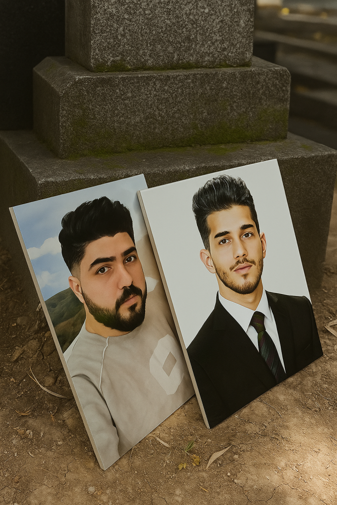 نمونه طراحی و ترمیم عکس قدیمی برای سنگ مزار